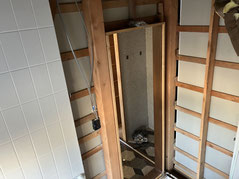 ユニットバスの出入り口を開き戸から引戸へ変更。開口部を広げるため、柱の移設を行いました。