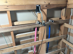 洗面脱衣室は、洗濯機を縦型からドラム式に買い替えるにあたり、水栓とコンセントの位置を変更。