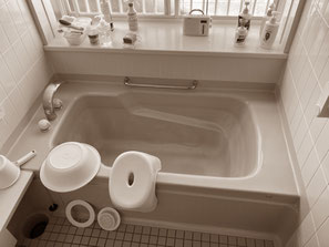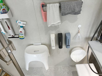 収納面でも不便を感じており、シャンプーや洗剤を備え付けの収納棚に置くと、側面のヌメリが気になり、掃除が大変でした。