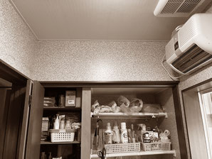 以前あった折れ戸は取り払い、ニトリの収納ボックスなどを使いながら、使い勝手や魅せ方を工夫されていらっしゃいます。